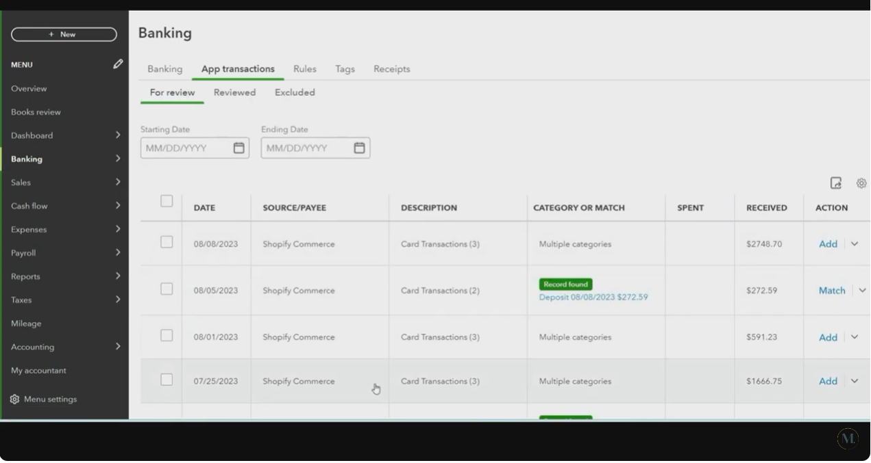#4 - The wrong workflow will result in duplicated income in your books. The wrong workflow: Add in Banking and match in App transactions. Instead, you need to make sure that you add from the App transactions and match or accept in the Banking transactions.