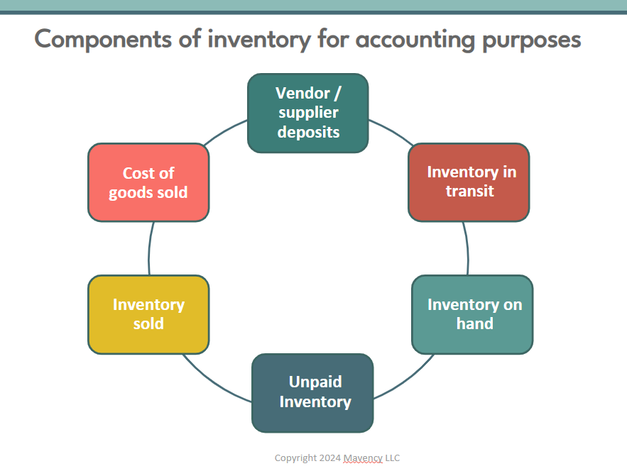 There's a lot involved in doing proper inventory accounting. Ideally, you need to be tracking vendor suppliers and deposits, inventory at transit, inventory on hand, unpaid inventory, inventory sold, and of goods sold. Let's go over the flow of inventory and how it affects balances for financial purposes.