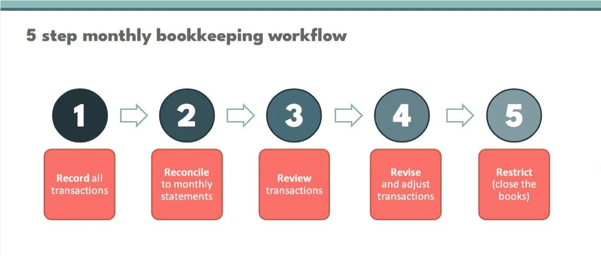 Monthly reconciliations are how you spot quiet errors before they snowball into bigger problems like overstated income, underreported expenses, or incorrect tax filings. Even just a few months of unreconciled accounts can throw your entire financial picture out of whack. That’s why making reconciliation a regular monthly habit is one of the most powerful things you can do to protect your business (Step #2 in the monthly bookkeeping workflow diagram below).
